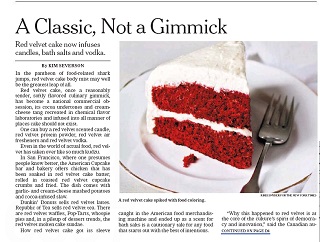 From body mist to vodka, red velvet flavoring is everywhere these days. The New York Times offers a rundown of some of the most peculiar places where red velvet can be found, while offering a history lesson of how this craze came to pass. One food author says what’s happened with red velvet is a microcosm of American capitalism, where we take any sort of advantage we can and expand on it.
