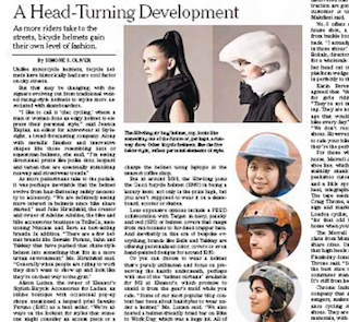 Some fashion designers are going where no one has gone before, says the New York Times, and turning their attention to the most decidedly unhip thing you can don: a bike helmet. Some are updating the traditional styrofoam oval with patterns like leopard, polka dots and tartan. Others are taking on the shape, and re-imaging the safety gear as objects that look more like hats or the less-bulky equestrian helmet.