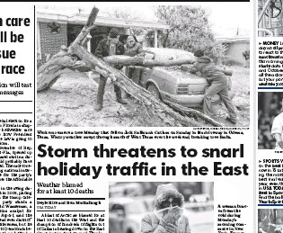 A major storm being blamed for 10 deaths in the West is heading toward the East Coast - just in time to wreak havoc on holiday travel. USA Today says rain will blanket the entire Interstate 95 corridor from DC to Boston. And there will be snow to the west. Rainy, windy conditions could lead to delays at delay-prone airports in Philadelphia and New York.
