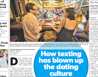 In this morning’s paper, USA Today points out how dating has been irrevocably changed by the rise of text messaging. “A bunch of us are having a drink at ____” requires much less courage than calling to make a one-on-one date. Says the paper: “Not since the dawn of the automobile has a technology — the cellphone — so swiftly and radically changed the way people interact, meet and move forward (or not) in a relationship.” But that doesn’t mean there aren’t rules. Number one: never wait longer than an hour to return a text from someone you’re interested in.