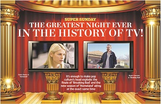 No, we’re not talking about the Emmy’s. Sunday night is shaping up to be an incredible night of television, and that’s not even counting some big NFL matchups. Sunday marks the series finale for Breaking Bad, the Season 3 premiere of Homeland and the series premiere of Masters of Sex.