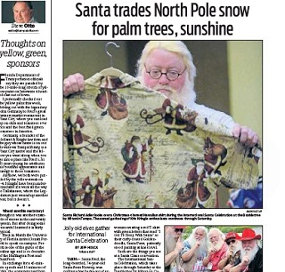 It’s a far cry from the North Pole, but hundreds of Santa Clauses have descended on Tampa, Florida for an annual Santa convention. The Tampa Tribune says it’s a chance for St. Nicks to swap stories and tips on bringing holiday cheer. Some come from as far away as Norway. One tip offered to new Santas, always wear your white gloves, and make sure they show in every photo.