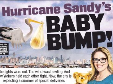 Expect a summer of babies, says the New York Post. And thank Hurricane Sandy. Doctors around the New York area say they have seen a 30 percent increase in mothers expecting in early August. If you’re counting, that’s about nine months after the superstorm stranded most of the city inside with nothing—or maybe something—to do.