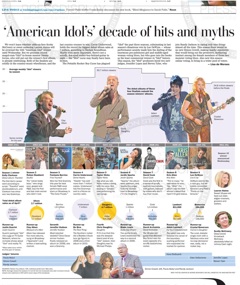 The “American Idol” finale is tonight. And today, the Washington Post has a great recap of the show’s first ten seasons, presented in a really useful interactive graph. Specifically, the paper takes a look at the commercial success of “Idol” winners. Under that banner, Carrie Underwood becomes the biggest winner ever, with 7 million albums sold. Chris Daughtry, who secured a fourth-place finish in Season Five, is the second most successful in terms of sales.