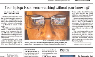 The Washington Post has a great story on how the camera on your laptop computer can be used to spy on you - without warning. Researchers have long known that triggering a camera remotely was possible, but only recently have hackers been able to figure out a way to disable the light that indicates the camera is recording. The easy way to protect yourself? Put a piece of tape over your camera.