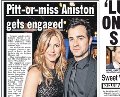 Not sure Jennifer Aniston would enjoy this New York Post headline. Describing the actress’s dating history as “Pitt-or-miss,” the paper reveals that Justin Theroux proposed over the weekend—and Aniston said yes.