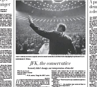 The Washington Post’s George F. Will writes that our interpretation of President Kennedy’s political record has changed over the years. Will says Kennedy was much more conservative than many people remember him to be. Kennedy’s fiscal policy, for example, provided plenty of rhetoric for Ronald Reagan’s supply-side tax cuts.