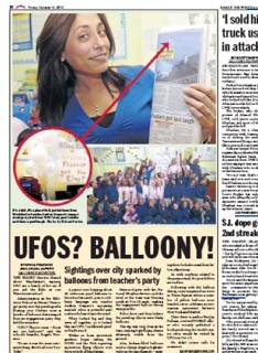 Remember how we told you about the baffling UFO sightings in Manhattan yesterday? Well, the New York Daily News thinks they’ve gotten to the bottom of it. A group of students say the UFO was actually a bunch of escaped pearly white balloons, meant for a teacher’s engagement party. Meteorologists say the winds were blowing in such a way that the balloon theory is possible. And helium balloons are known to change shape when the reach high altitudes.