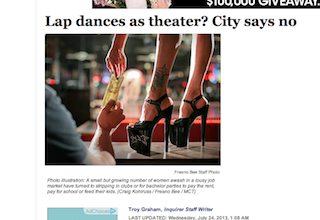 Does a lap dance count as theater? That’s what the lawyers for three “gentleman’s clubs” are claiming, says the Philadelphia Inquirer, as a way to get around a new city law that would tax the income earned from lap dances. Philly businesses are exempt from paying the “amusement tax” if they offer “legitimate contemporary American theater.” To prove their point, the lawyers hired a Yale-educated expert to argue that the women she saw at Club Risque, Cheerleaders, and Delilah’s were “dancers creating characters, displaying technical virtuosity…much like a ballet dancer on point shoes.”