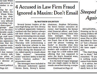 Lawyers tell clients all the time not to put anything incriminating into an email. But several executives at a New York law firm apparently ignored that advice when they allegedly plotted to cook the firm’s books to keep it alive during the financial crisis. Prosecutors say the accused men talked openly in emails about “fake income,” “accounting tricks” and fooling their firm’s “clueless auditor.”
