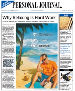 Sometimes, relaxing is hard work. In an age when, even on the beach, we are electronically tethered to the office it can be hard to enjoy a vacation says Melinda Beck of the Wall Street Journal. Only 53 percent of Americans say they come back from vacation feeling rested. And some suffer from something called “leisure sickness, which mimics the withdrawal from steroids.  Some say by checking in with the office while they’re out, they are mitigating the stress they’ll feel when they get back. That’s fine says Beck, but she recommends limiting work communication to a specific hour a day while on vacation.