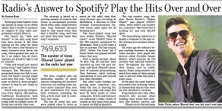 How do radio stations compete with streaming music services like Spotify and Pandora? By offering less variety than ever. The Wall Street Journal says research has confirmed that listeners stay tuned when they hear a familiar song - and tune out when they hear something they don’t recognize. The top 10 songs of last year were played twice as often on the radio as the top 10 songs from a decade ago.