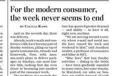 The Washington Post says Amazon’s new Sunday package delivery knocks down another barrier between the week and the weekend. The paper says the tradition of resting on Sunday has been disappearing for years with the relaxing of laws on shopping, hunting, liquor sales and gambling. Our always-online culture is encouraging companies to find new ways to get us what we want, as soon as possible.