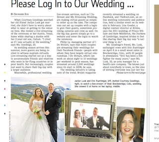 This might be the year you stop worrying about what to wear to the eighth wedding you’ve RSVP to because the Wall Street Journal says more and more couples are live-streaming their big day. What started out as a way to accommodate sick or distant relatives has turned into an economical way to grow your guest list. Professional sites do all the work—all guests must do is log on at the appropriate time. Etiquette experts are still debating whether an online RSVP warrants a gift or not.