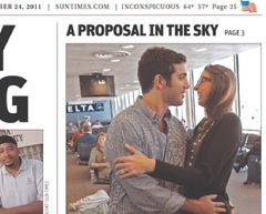 Turns out, all you have to do to get a free drink on Delta is propose to someone. The Chicago Sun-Times has the details of a marriage proposal, which took place this weekend at 32,000 feet. Check it out: