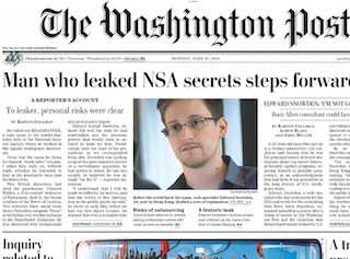 The man behind the NSA leaks has outed himself, reports the Washington Post on its front page this morning. Edward Snowden is a 29-year-old tech specialist and former undercover CIA employee. He says that “no single event” confirmed his decision to blow the whistle on the NSA, but noted that the “President Obama has failed to live up to his pledges of transparency.” Experts say Snowden’s acknowledgment is highly unprecedented and opens him up to prosecution.