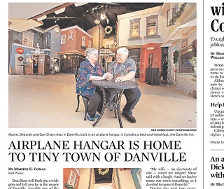 You won’t find Danville, Florida on a map. But it has its own Irish pub, City Hall, movie theater and bed-and-breakfast. Oh, and it’s built inside an airplane hangar. The Orlando Sun-Sentinel introduces us to Dan Shaw, the “Mayor” and creator of Danville. He says he came up with the idea when he decided to build an airplane hangar that would also serve as a guest house for his flying buddies.
