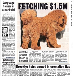 This guy looks a little sad…guess he doesn’t know how much he’s worth. The New York Post says this 11-month-old red Tibetan mastiff is now the world’s most expensive dog, after being sold to a Chinese millionaire for a record $1.5 million. Named Hong Dong (Big Splash in Chinese), the seller says the dog is 180 pounds and growing. Tibetan mastiffs have a reputation for being great guard dogs, and the seller says Hong Dong’s new owner will “be able to recoup his investment in just a few years by charging other breeders stud fees of as much as $15,000 each.”