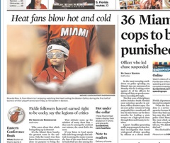 Miami Heat fans are some of the cockiest, which makes the one of the most reviled fan bases in the NBA says the Sun Sentinel this morning. They are also some of the most fickle fans, another trait that isn’t looked upon kindly in other basketball cities. Explains a local sports radio host: “The typical Miami Heat fan loves the team when they are winning, hates the team when they are losing and their opinion changes depending on the score at the moment.”