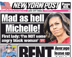 First lady Michelle Obama told CBS’ Gayle King yesterday that she’s “not an angry black woman” after a new book by the New York Times’ Washington correspondent claimed that she, in fact, was just that. So what headline does the New York Post put on their front page? “Mad as Hell Michelle.” I guess they weren’t listening.