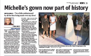 Michelle Obama’s inaugural dress is on its way to becoming more famous than the first lady. The Chicago Sun-Times says the gown, and the accessories that complemented it, have a new home in the Smithsonian. Speaking at the unveiling, Obama said she was a little embarrassed about all the attention the dress had garnered: “I’m not used to people wanting to put things I’ve worn on display.”