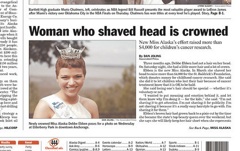 Three months ago Debbe Ebben didn’t have any hair on her head. Now, says the Anchorage Daily News, she has a crown. The newly minted Miss Alaska shaved her head in support of childhood cancer research. It’s grown back a little since then, but Ebben says she’ll likely keep it short when she represents her state in the Miss America pageant next January.