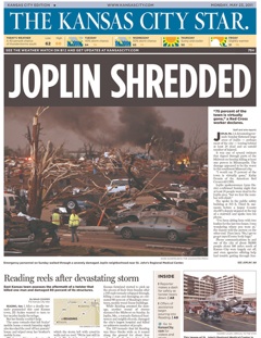 Joplin, Missouri is reeling after a tornado ripped through the town on Sunday, killing at least 89 people. TV stations were knocked off the air, whole neighborhoods were demolished and a local hospital in the twister’s path took a direct hit says the Kansas City Star. A spokeswoman for the Red Cross estimated that 75 percent of the town “is virtually gone.”