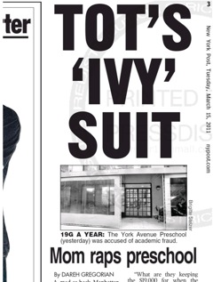 Among its many claims (“studies have shown entry into a good nursery school guarantees more income than entry into an average school”), the suit alleged that her four-year-old daughter was still learning shapes and colors, instead of, I guess, advanced trigonometry.
