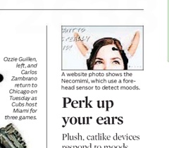 It’s like a mood ring, for your head. The Chicago Tribune picks up a story from the LA Times this morning about Necomimi, an accessory that just debuted at Comic-Con, and is perfect for “anyone who has ever longed for more expressive ears.” A Japanese company has employed the same technology doctors use to measure brain waves and created a pair of faux cat ears, capable of showing a range of emotion. No, the is not a SNL skit. All you need is $99 and four AAA batteries. Check out the promotional video below: