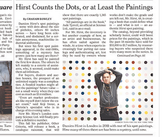 The New York Times says the answer has finally been revealed to one of the art world’s most enduring questions: How many Damien Hirst spot paintings are there? The artist first starting making his iconic spot paintings in the mid 1990s. Hirst says he made the first few dozen, and then left it up to his assistants to fill in the spots, which means no one is quite sure how many spot paintings actually exist. Until now. Hirst cooperated with a London publisher on a book that will reveal there are exactly 1,365 spot paintings.