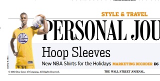 Players from the 10 NBA teams with games on Christmas will be wearing jerseys with sleeves this year. The Wall Street Journal says the limited edition tops are designed to appeal to men who want to wear what the pros are wearing, but who don’t look particularly good in tank tops. It took more than a year to develop the fabric so that players wouldn’t feel restricted in wearing them.