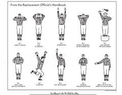Whew. After massive media pressure, the NFL managed to strike a labor deal with its referees late last night. The New York Times has a funny spin on the news this morning, printing a cartoon of on-field signals for replacement refs. Like figure 6 in the lower left, which is the official sign for “what game are you watching?” Or next to that, figure seven, which is the signal for a home run.