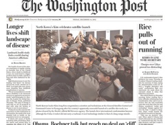 A smiling Kim Jong Eun appears on the front page of the Washington Post this morning, surrounded by ecstatic scientists and engineers from Pyongyang’s Satellite Control Center. North Korea reported that it successfully launched a satellite into orbit earlier this week, a move that drew international criticism because it used the same technology as needed to launch a long-range missile.