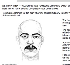 How’s this for an eye-catching headline: “Police Release Sketch of Nude Intruder.” The sketch is, fortunately, only a head shot. The Orange County Register says the man was found “completely nude under a bed” in a stranger’s house. After the homeowner heard some rustling under his bed, the man gave up his hiding spot, apologized repeatedly, said he was on drugs and fled the scene by foot. Got to wonder what was going through his head.