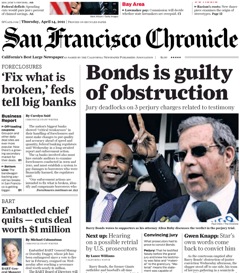 It was Barry Bonds’ own words that got him convicted of obstruction writes San Francisco Chronicle columnist Gwen Knapp. When asked whether his trainer had given him anything that required a syringe, Bonds launched into a “thoroughly irrelevant soliloquy” about being a celebrity child. Following judge’s instructions that said “evasive answers amounted to obstruction,” the jury decided Bonds was guilty. Knapp says most of the 30 athletes called to testify in front of the Grand Jury “showed sufficient respect for the law” by telling the truth; only four, including Bonds, were charged with “thumbing their noses” at the process. The jury could not, however, reach a verdict on the other three counts Bonds faced.