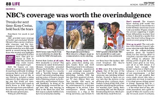 USA Today’s Robert Bianco says NBC nailed its Olympic coverage by offering live coverage during the day for those who wanted to see it all and the usual, tape-delayed coverage in prime time for those who wanted only the highlights. He says NBC should make a few tweaks to improve for the next Olympics, including keeping Bob Costas healthy and moving skating commentators Tara Lipinski and Johnny Weir to prime time.