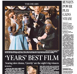 “12 Years a Slave” won the Best Picture Oscar, beating out “Gravity” in what the Los Angeles Times describes as one of the closest races ever. Steve McQueen becomes the first black director to make a Best Picture winner. As expected, Cate Blanchett won Best Actress for her role in “Blue Jasmine” and Matthew McConaughey was named Best Actor for “Dallas Buyers Club.”