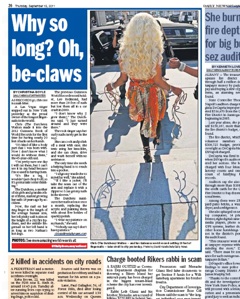 There are nails, and then there are nails. The New York Daily News has a great photo in this morning’s paper, of a Las Vegas singer showing off her Guinness Book of Records-setting fingernails. Perhaps the only thing more impressive than their 19-foot span is the shadows they cast on the pavement.