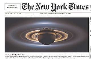 NASA’s Cassini spacecraft took this collection of wide angle shots to show a 405,000 mile wide view of Saturn in its natural colors. You can actually see the Earth and the Moon to the lower right of Saturn - appearing as tiny little dots. The New York Times website allows you to zoom in on the photo to get a closer look at Saturn and the planets visible in the distance.