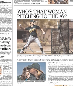“Pony-Tailed Pitcher” First Woman to Throw to MLBers