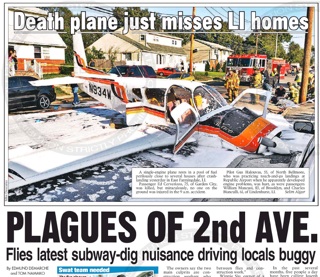 There’s a frightening photo in the New York Post this morning. It’s of a single-engine plane that crashed into a Long Island neighborhood over the weekend. A passenger was killed but no one on the ground was injured.