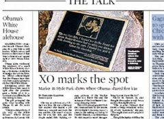 Visitors to Illinois can see the birthplace of Ronald Regan and the family home of Abraham Lincoln. And now, they can see the place where Barack and Michelle Obama shared their first kiss. The Chicago Tribune says a plaque has been placed at a Baskin-Robbins in Hyde Park along with the president’s description of the date, taken from an interview with O Magazine: “On our first date, I treated her to the finest ice cream Baskin-Robbins had to offer, our dinner table doubling as the curb. I kissed her, and it tasted like chocolate.”