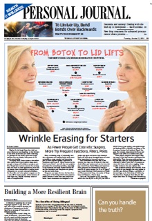Assuming a lack of information is what’s been keeping you from exploring plastic surgery, the Wall Street Journal sets out to fill in the cracks in today’s paper. Under the headline, “Wrinkle Erasing for Starters” is a primer about the cost, risks, and what results to expert.