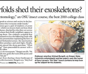 Playboy has named a course at Oregon State University the best in the country. And while it has nothing to do with birds, says the Oregonian, it does shine a spotlight on bees. The magazine named honor Far Side Entomology the funniest college course because it uses Gary Larson’s hilarious insect-themed cartoons to teach students about the symbiotic relationship between humans and bees. Playboy’s not the only magazine to single out the class, last year the Chronicle of Higher Education gave it a hat tip as well. Despite the praise, professor Michael Burgett says he’s not holding his breath for recognition from the school’s administrators: “I’m still waiting to get a congratulatory note from the front office, I’ll be waiting a long time.”