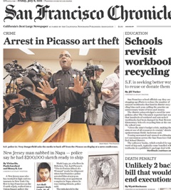 Mark Lugo was “enjoying an evening with friends,” when police arrested the 30-year-old New Jersey man for allegedly stealing a Picasso sketch days earlier. The San Francisco Chronicle says Lugo had removed the sketch from its frame and had packed it to send to an unknown recipient. The friends he was staying with apparently had no idea they were housing a fugitive. Police say if they’d taken anymore time to crack the case, the sketch “would have been in a FedEx box somewhere.” They identified Lugo after tracking down the cabbie who drove him away from the crime scene.