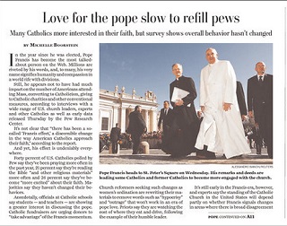The Washington Post says despite his huge impact around the world, Pope Francis has failed to have much of an impact on the number of Americans attending mass, converting to Catholicism or donating to Catholic charities. A recent Pew poll found 40 percent of U.S. Catholics say they pray more often, 21 percent read the Bible more and 26 percent say they’re more excited about their faith.