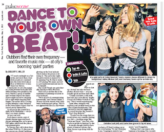 It’s the quietest party in town. The New York Post says “quiet clubbing” is all the rage these days. Called silent discos in Europe, the idea is just what you think: a room packed full of people swaying to the beat. Except the beat is coming from headphones. Partygoers receive a pair of headphones at the door, which can be tuned to several different radio frequencies. Each station emits a different color, indicating to everyone else in the room what station you’re rocking out to. And if you want to have a conversation? Simply take off your headphones.