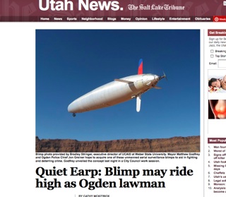 The Salt Lake Tribune reported the story earlier this week, cleverly describing the blimp as “Quiet Earp”