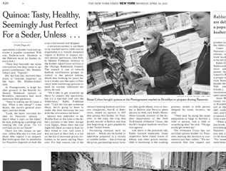 Quinoa wasn’t around when the Jews escaped from Egypt. And because it had yet to be discovered, quinoa isn’t on lists of leavened grains forbidden from the Passover table—but does that omission mean the grain is actually kosher?  The New York Times says the grain has been heralded as a welcome addition to the Seder table in recent years. But some rabbis have questioned whether it meets requirements for the holy dinner. There’s a another problem: Because quinoa has become popular in recent years, many more farmers have added the crop to their planting lineup; experts warn that even if quinoa is deemed kosher, it could easily be mixed with or processed by the same machines that handle forbidden grains like wheat and barley.