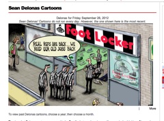 There’s a funny editorial cartoon in the New York Post this morning. That’s a group of replacement refs outside of a Foot Locker. The caption reads: “Real refs are back—we need our old jobs back.”